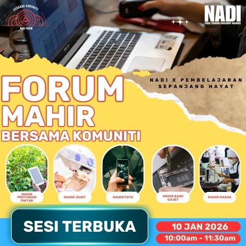 Jom sertai Forum MAHIR bersama Komuniti untuk mengetahui lebih lanjut tentang Program Mahir Intake 3. Peserta berpeluang untuk memenangi hadiah cabutan bertuah sekiranya peserta hadir ke NADI pada hari & masa forum tersebut dilangsungkan: