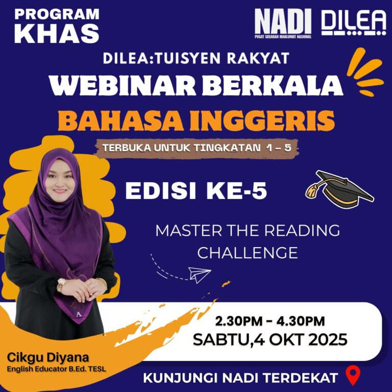 WEBINAR BERKALA BAHASA INGGERIS EDISI 5 Hello pelajar Tingkatan 1 – 5! Nak kuasai Bahasa Inggeris dengan lebih mudah dan mantap? Jom sertai Webinar Berkala Bahasa Inggeris Edisi ke-5 khas untuk bantu anda faham konsep dengan lebih mendalam! Tarikh: 4 […]
