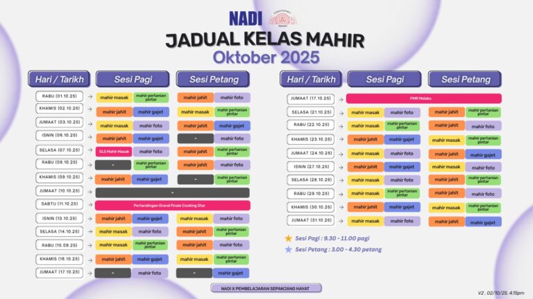 📢✨ KELAS SHORT LEARNING SERIES (SLS) NADI MAHIR – QUARTER 4 ✨📢 JOM SERTAI BERAMAI-RAMAI! 💪Kali ni, NADI MAHIR bawakan 2 sesi SLS live dari Studio Mahir! 🎥 👩🍳 MAHIR MASAK – Viral Banana Pudding🗓️ 7 Oktober 2025 (Selasa)🕤 9:30 […]