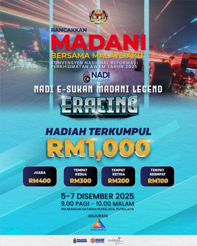 PERTANDINGAN NADI E-SUKAN MADANI LEGEND – ERACING RANCAKKAN MADANI 2025 Sedia untuk berlumba? Tunjukkan skill pemanduan maya anda dan rebut gelaran juara eRacing sempena Program Rancakkan MADANI 2025 Percuma! Tiada yuran penyertaan! Terbuka untuk Warganegara Malaysia Hadiah lumayan menanti! Tarikh: 5 Disember 2025 Masa: […]