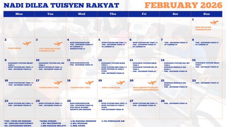 Masa : 10.30 pagi – 11.30 pagi Tarikh : 06 Februari 2026 Tempat : NADI Kampung Sungai Leman