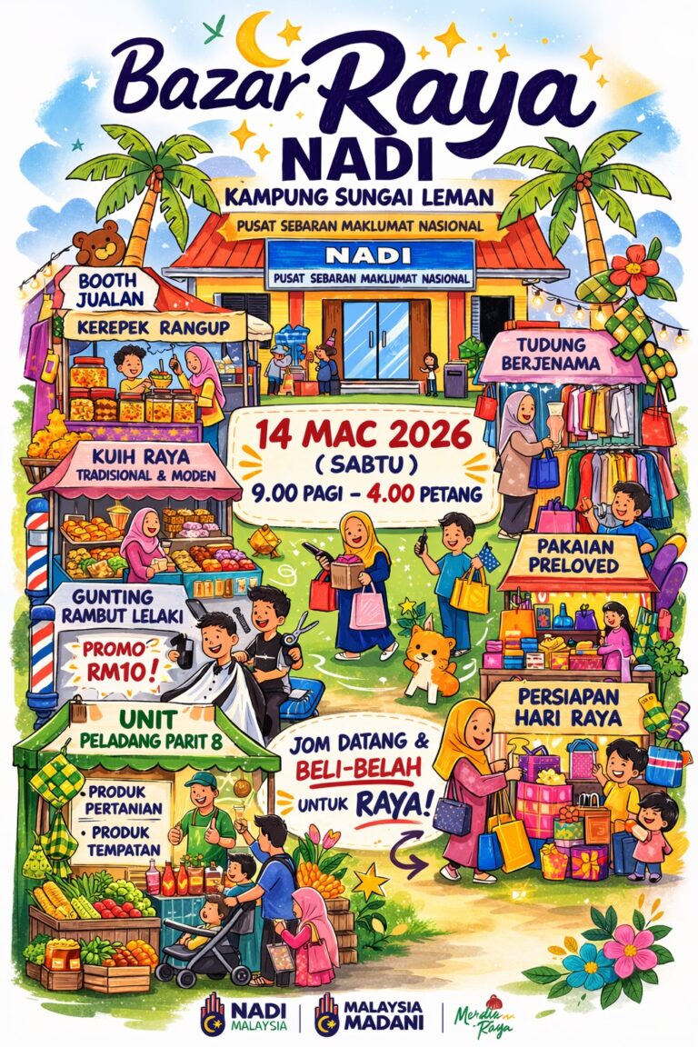 Masa : 9.30 pagi – 11.30 pagi Tarikh : 03 March 2026 Tempat : NADI Kampung Sungai Leman