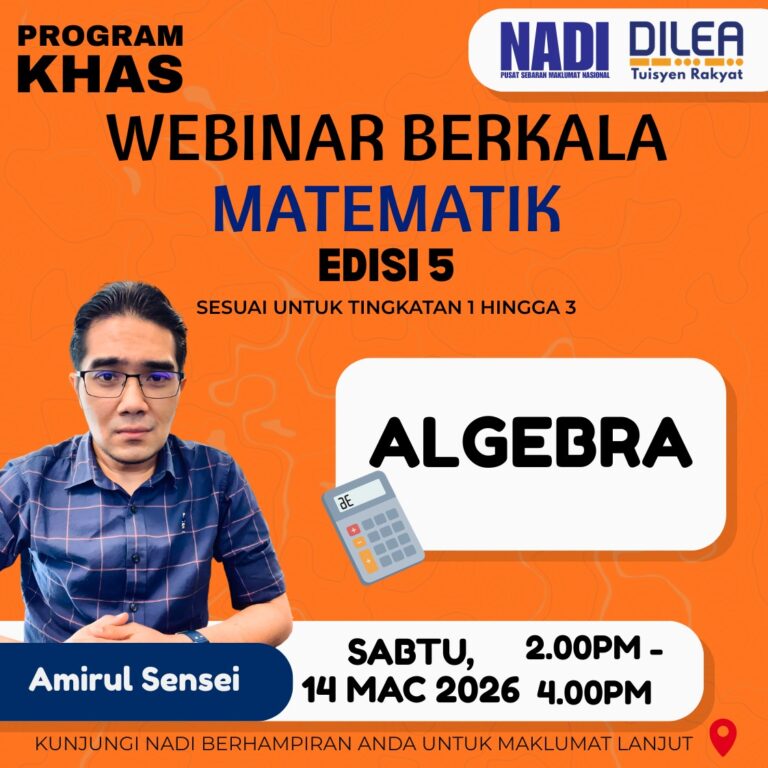 π’ WEBINAR BERKALA MATEMATIK β EDISI 5 π’ Hello pelajar Tingkatan 1 hingga 3! π Adakah anda masih keliru dengan topik Algebra? Tak pasti cara menyelesaikan soalan algebra dengan langkah yang betul? Jangan risau! Jom sertai Webinar Berkala Matematik β […]