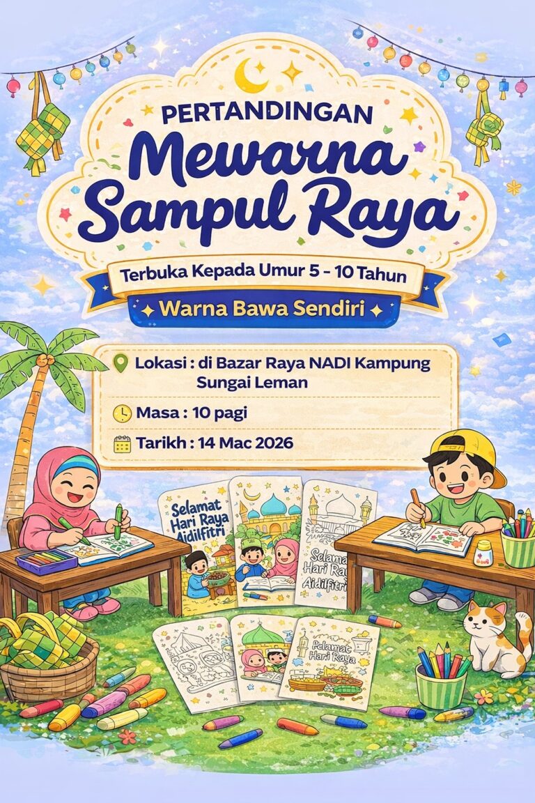 πβ¨ PERTANDINGAN MEWARNA SAMPUL RAYA β¨π Jom meriahkan Bazar Raya NADI Kampung Sungai Leman dengan menyertai Pertandingan Mewarna Sampul Raya khas untuk kanak-kanak! π¨ποΈ π§π¦ Terbuka kepada kanak-kanak umur 5 β 10 tahun π Lokasi: Bazar Raya NADI Kampung Sungai […]