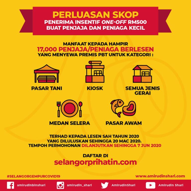 Ucapan daripada YAB Dato’ Seri Amirudin Shari, Dato’ Menteri Besar Selangor Assalamualaikum dan salam sejahtera, Pagi ini, 15hb April, Majlis Mesyuarat Kerajaan Negeri Selangor telah mendapat maklumbalas terkini berkenaan status insentif RM500 one-off kepada penjaja dan peniaga kecil di bawah […]