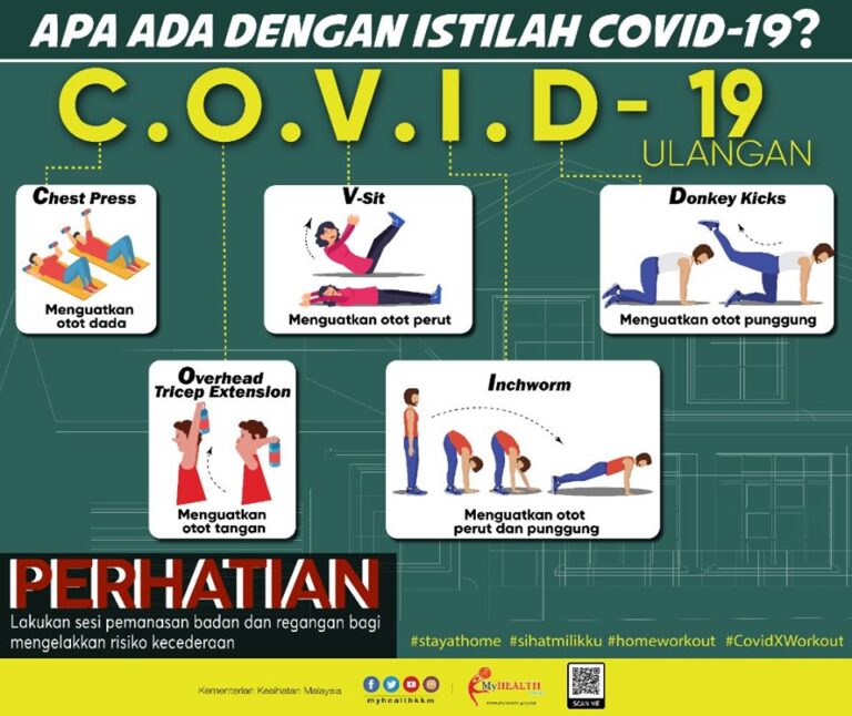 Apa ada dengan istilah C.O.V.I.D – 19 dalam aspek aktiviti fizikal? Jom lakukan : ?hest Press ?verhead Tricep Extension ?-Sit ?nchworm ?onkey Kicks dengan ?? kali ulangan. #COVID19#stayathome#dudukdirumah