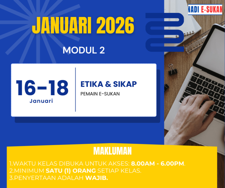 🎮🔥 MODUL 2 E-SUKAN | JANUARI 2026 🔥🎮 📢 Perhatian kepada semua pemain e-sukan!Nak jadi pemain yang beretika, berdisiplin dan profesional dalam dunia e-sukan? 🤝💯Inilah peluang terbaik untuk anda tingkatkan sikap & adab sebagai pemain e-sukan 🧠✨ 📅 Tarikh: 16 […]