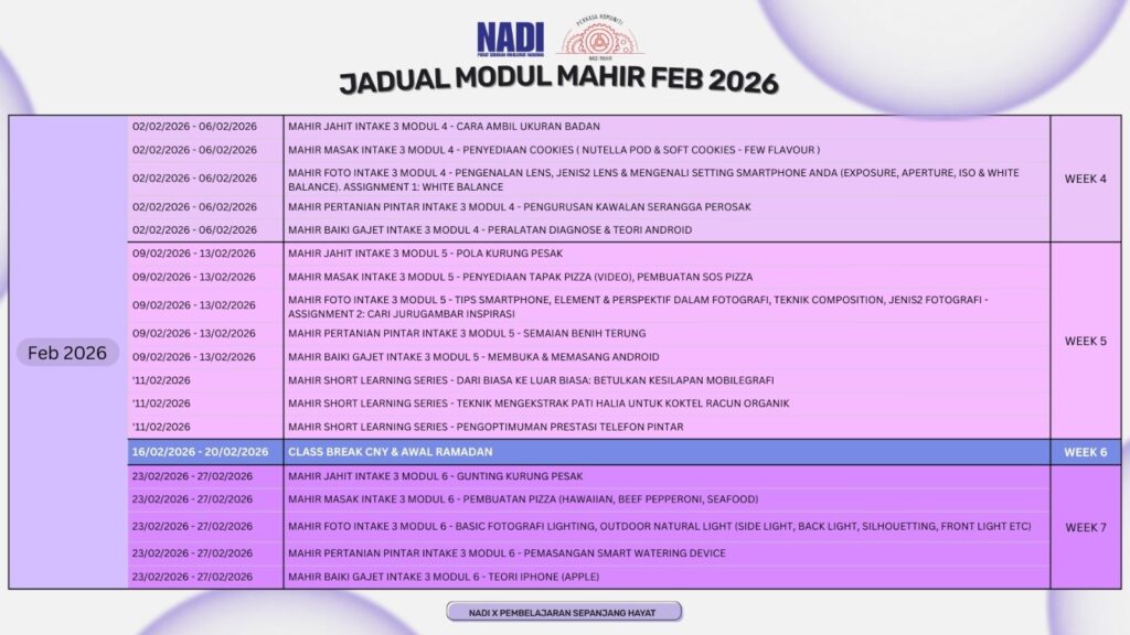 π’ JADUAL KELAS & MODUL MAHIR FEBRUARI 2026 π’