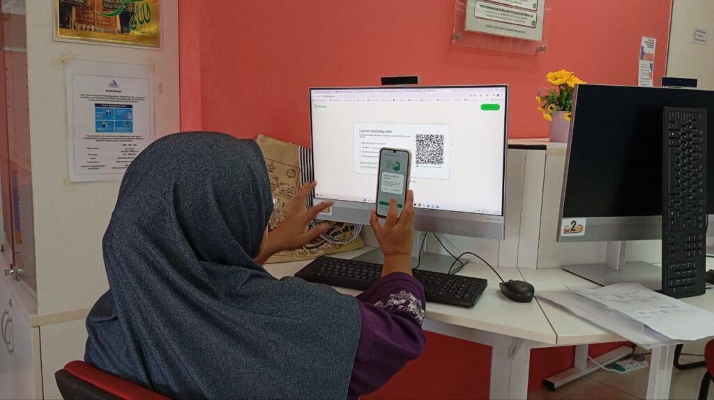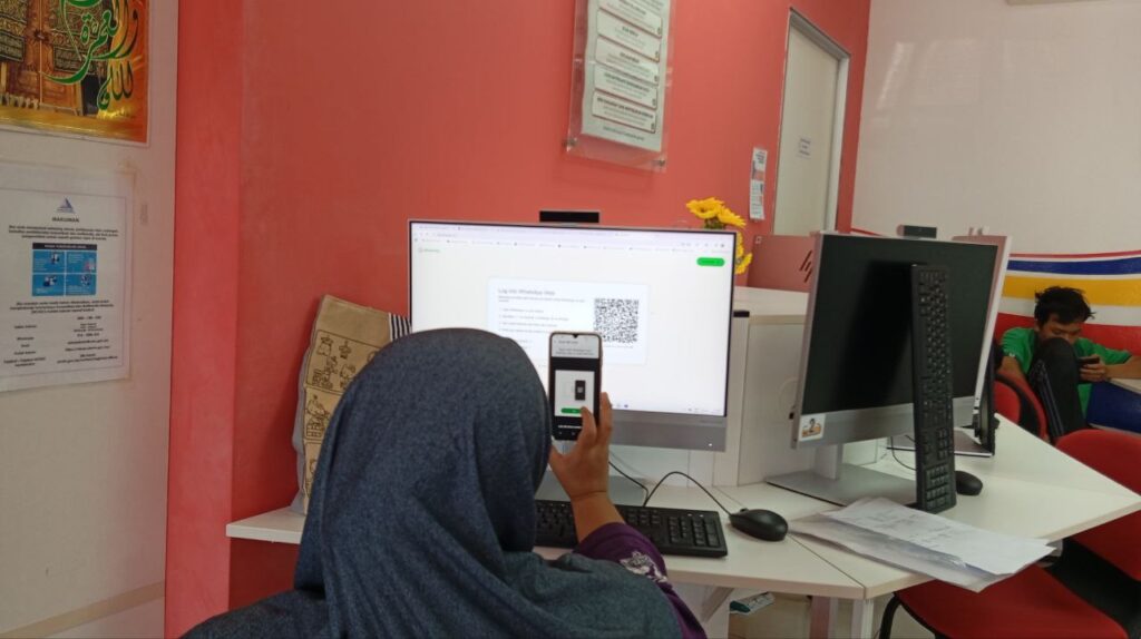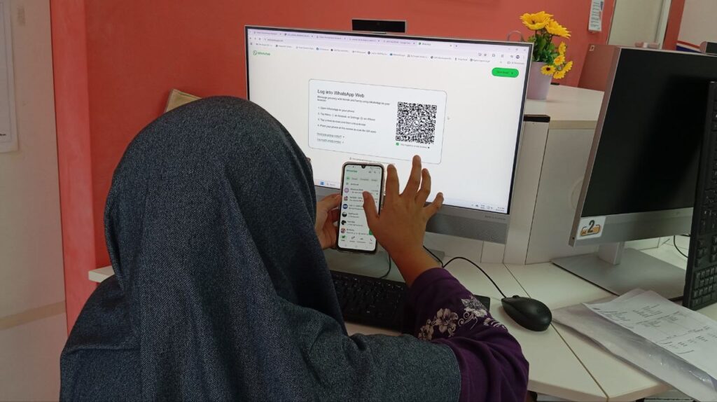 | Aktiviti Petugas memberi penerangan dan pengetahuan kepada peserta mengenai fungsi aplikasi WhatsApp Web dan WhatsApp Web. Petugas memberi penerangan mengenai kelebihan dan kekurangan aplikasi chat tersebut |