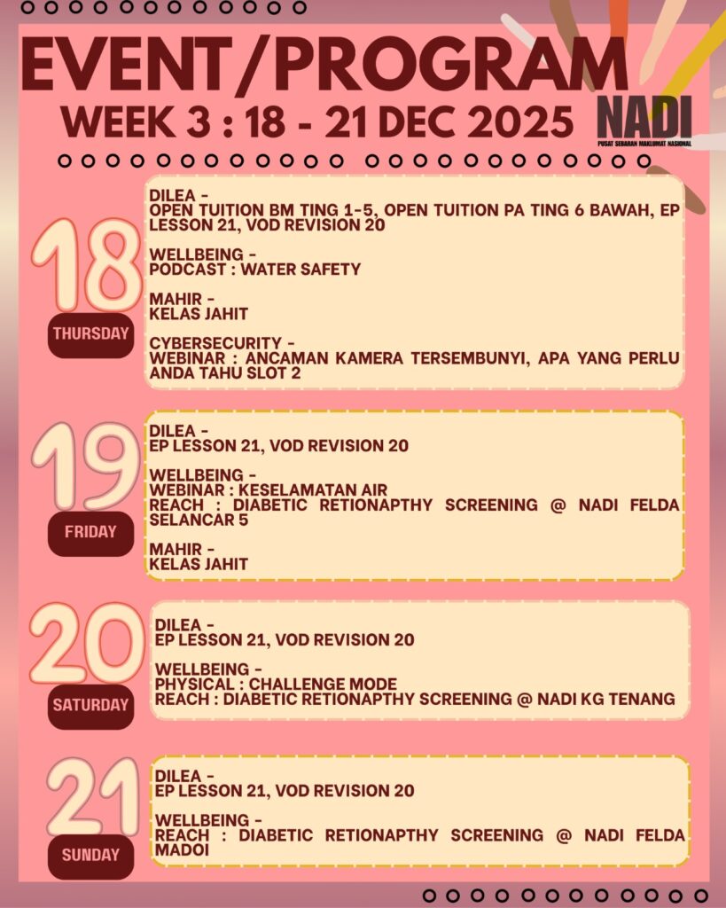 ๐ฒ Untuk maklumat lanjut, hubungi pihak NADI atau datang terus ke pusat anda.