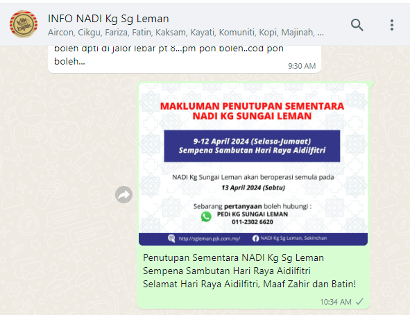 PROMOSI & KESEDARAN PEDi : Penutupan NADI Sempena Cuti Sambutan Aidilfitri