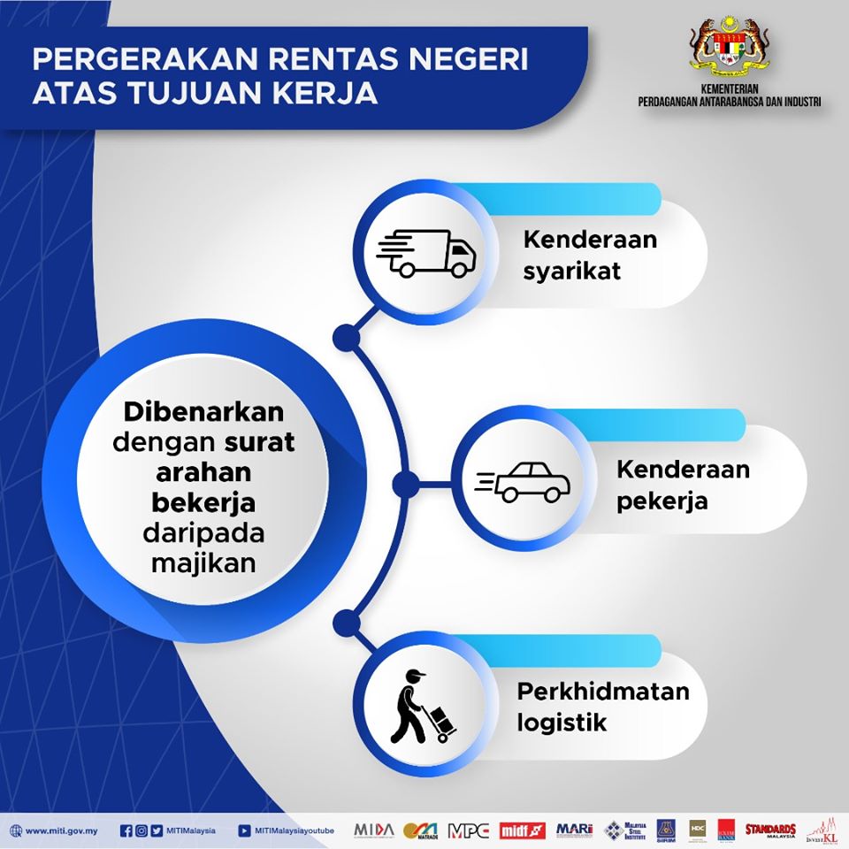 Pergerakan rentas negeri atas tujuan kerja tidak perlu mendapatkan kebenaran pihak polis, cukup sekadar surat arahan bekerja daripada majikan. Namun, pergerakan atas tujuan-tujuan yang lain perlu mendapatkan kelulusan polis terlebih dahulu.