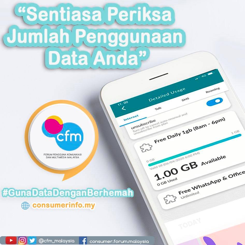 Sambil tengah asyik mengikuti info terkini mengenai #Covid19 sepanjang PKP ini, jangan lupa “Periksa Penggunaan Data Anda” ya.