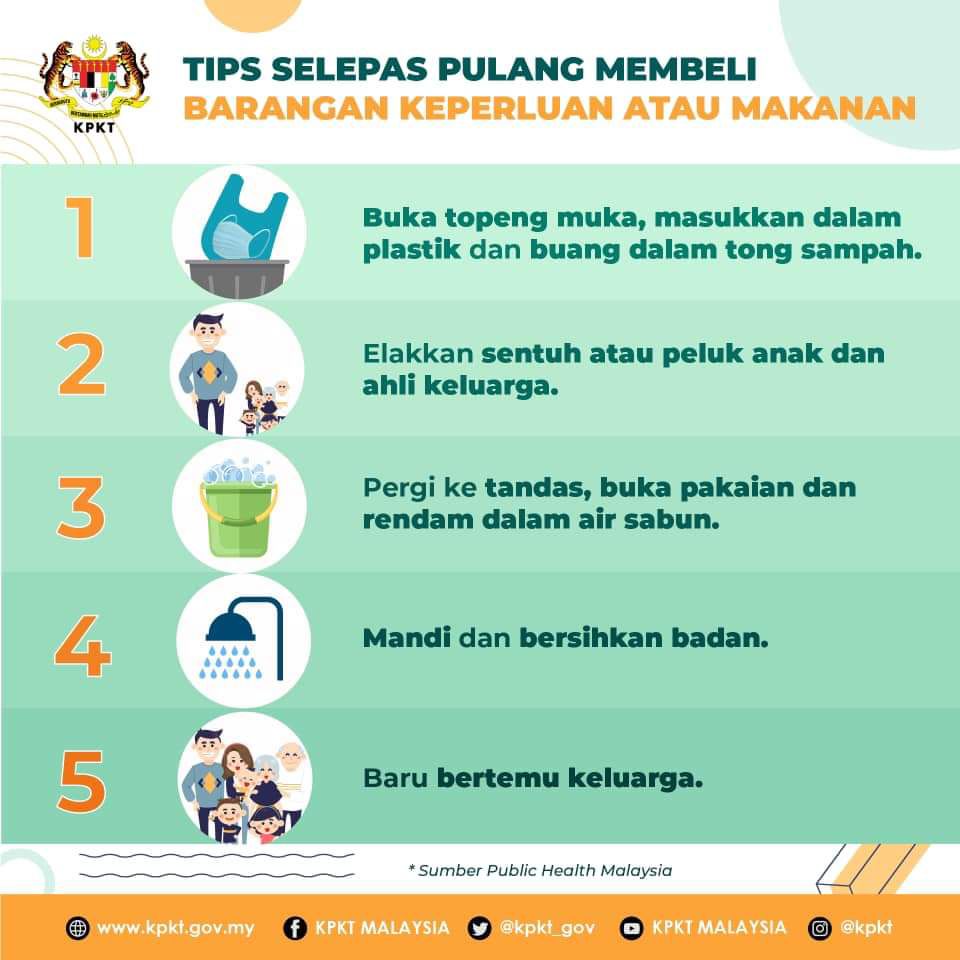 Seperti sedia maklum, hanya ketua keluarga atau wakil sahaja yang dibenarkan untuk keluar membeli barangan keperluan atau makanan sepanjang tempoh Perintah Kawalan Pergerakan. Untuk itu, admin kongsikan dengan anda semua mengenai tips yang boleh anda praktikan selepas pulang membeli barangan keperluan atau makanan demi melindungi keluarga tercinta anda. Mencegah itu lebih baik daripada merawat.
