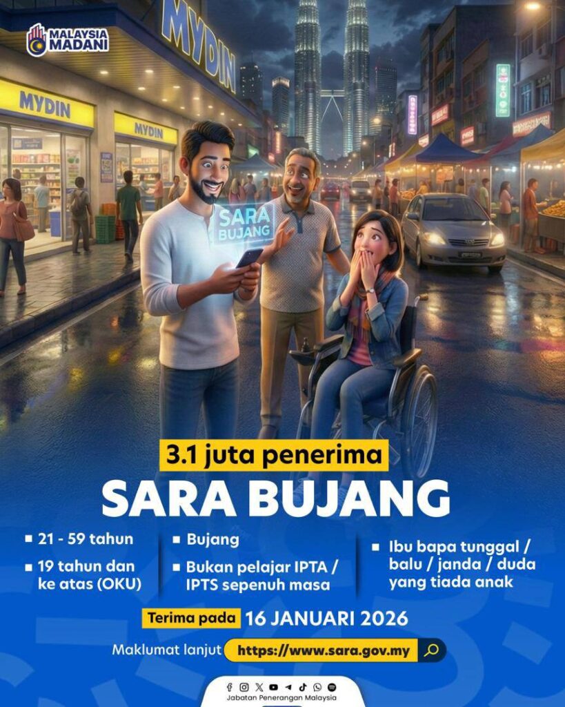 3.1 juta penerima SARA Bujang bakal menerima bantuan mulai