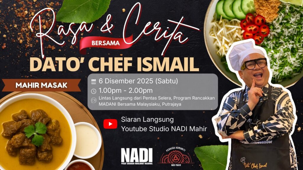 Nak belajar terus dari chef legenda Malaysia? Jom sertai sesi masakan eksklusif secara LIVE bersama Datoβ Chef Ismail dari Pentas Selera, Program Rancakkan Madani Bersama Malaysiaku, Putrajaya.